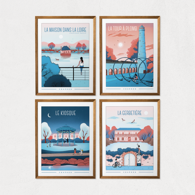 Illuminez votre intérieur avec ce lot d'affiches qui illustrent 4 lieux emblématiques de la ville de Couëron (44) :